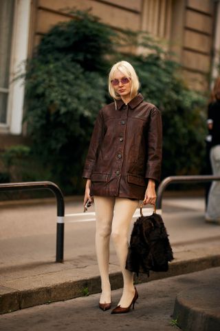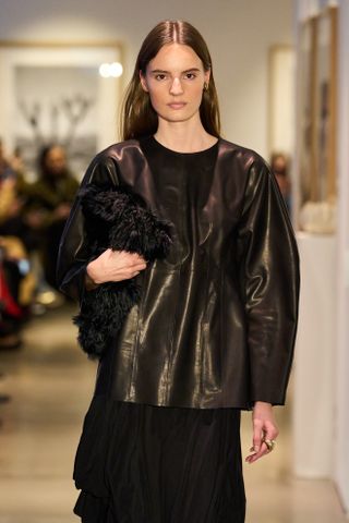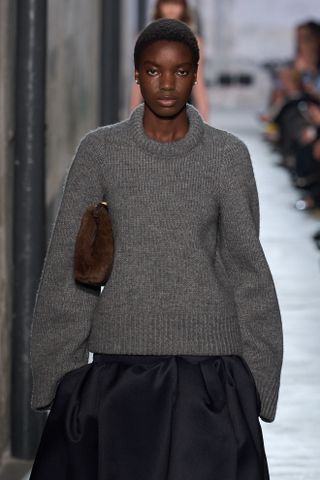 One prime example of this was Sacai’s fall show, in which a chunky cable-knit sweater was haphazardly styled over a white shirtdress and paired with a slouchy hobo bag and shearling ballet flats—creating an air of controlled chaos that’s downright chic. Whether at Sacai or Simone Rocha, runway shows seemed to challenge the notion that you had to adopt minimalist-leaning accessories to achieve an air of wealth (sorry, pillbox hats and capes). You don’t need to embrace quiet luxury to look good; in fact, you can look like you’ve left your Upper East Side penthouse simply by adopting a maximalist stance, or in this case, just some form of a furry accessory.